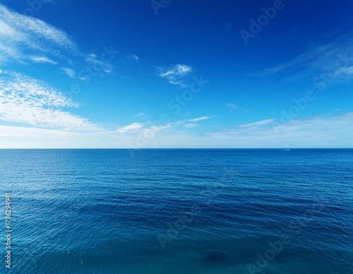 Obraz premium a serene view of a calm ocean under a clear blue sky evoking tranquility and...