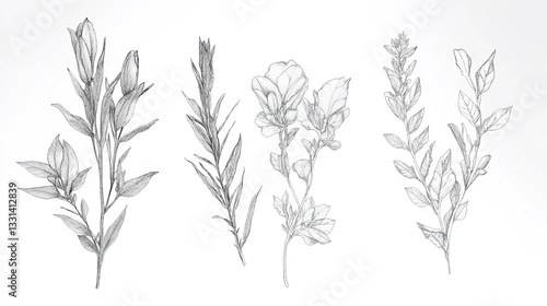 © Nasira, Naklejka premium A serene view of delicate poppies with ethereal white petals, set against a stark black background that highlights their intricate beauty.