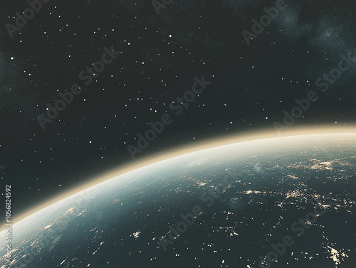 Obraz premium A serene view of Earth’s curvature set against the starry expanse of space,...