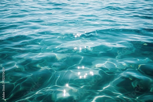 Obraz premium A serene view of shimmering turquoise water reflecting sunlight.