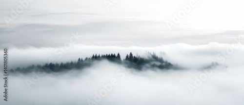 © Hatoru, Fototapeta premium A serene view of trees emerging from soft, misty clouds.