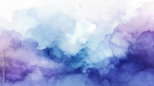 © Jiraporn, Fototapeta premium A serene watercolor background featuring soft hues of purple and blue, perfect for design projects and artistic creations.