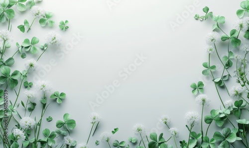 © Q STOCK, Naklejka premium A Serene watercolor clover and wildflowers frame delicate, peaceful feeling