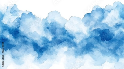 Fototapeta premium A serene watercolor design featuring soft blue clouds against a white...