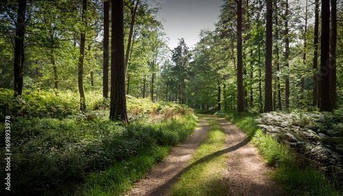 Obraz premium a serene woodland scene with a dirt path meandering through it