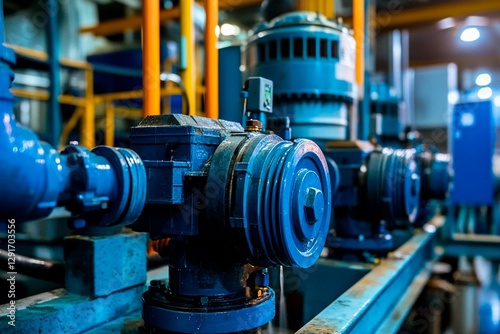 Fototapeta premium A series of industrial water pumps are arranged in a manufacturing facility,...
