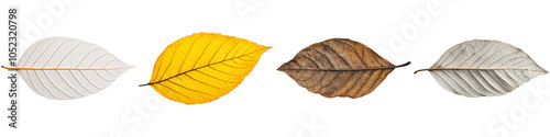 Fototapeta premium A series of leaves in varying colors, showcasing the transition from green to...