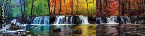© Alexandr, Obraz premium A series of pictures show a waterfall in different colors, AI