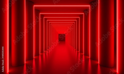 © fuwen, Fototapeta premium A series of red columns that light up with neon lights.
