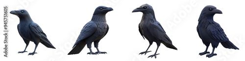 Fototapeta premium A series of stylized ravens in different poses showcasing their distinctive...
