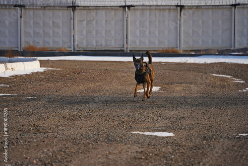 © Vladimir, Fototapeta premium A service dog of the armed forces plays with a ball.