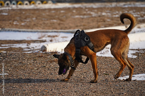 © Vladimir, Fototapeta premium A service dog of the armed forces plays with a ball.