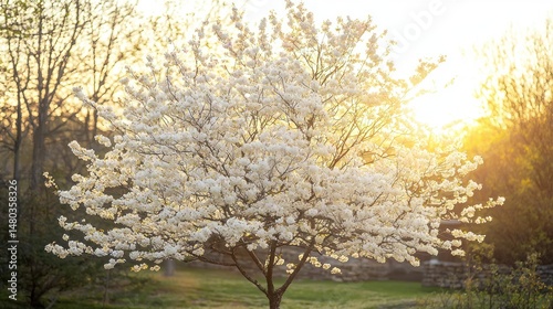 © Soknea, Obraz premium A serviceberry tree in full bloom during spring
