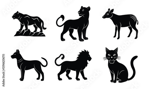 Obraz premium A Set Of Animal Bundles Vector Illustrator | Wildlife, Farm, Pet, and Zoo Animal Clipart Set | Hand-Drawn Animal Silhouettes for Creative Projects.