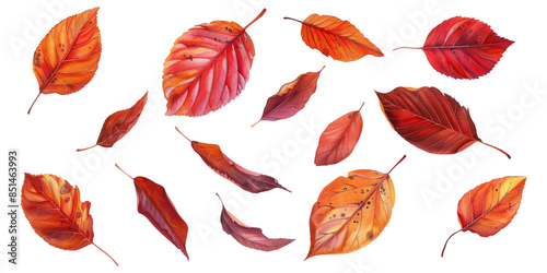 © EnelEva, Fototapeta premium A set of autumn leaves isolated on a white background