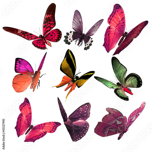 Naklejka premium A set of 9 beautiful 3D rendered Butterflies isolated on a white background