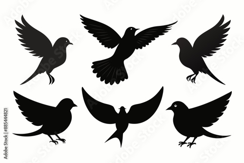 © Jannatul, Obraz premium A set of bird in flight silhouette black vector artwork illustration
