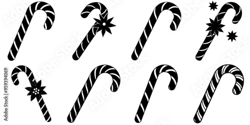 © Al Rafi, Naklejka premium A set of black Christmas Candy cane silhouettes