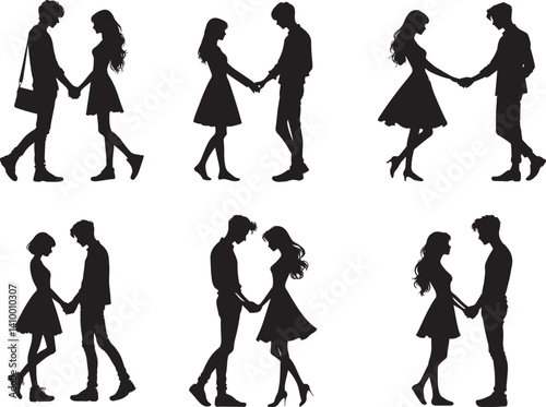 © Simu Store, Fototapeta premium a set of black silhouette couples holding hands in various poses