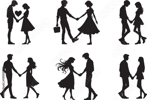 © Simu Store, Fototapeta premium a set of black silhouette couples holding hands in various romantic poses