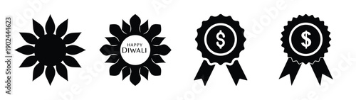 Fototapeta premium A set of black vector graphic ribbons and rosettes with various designs on a white background silhouette