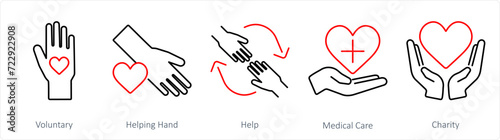 Fototapeta premium A set of 5 Charity and donation icons as voluntary, helping hand, help