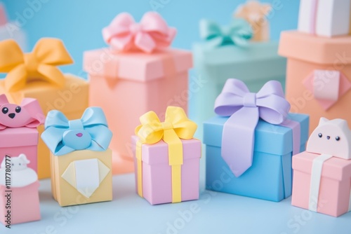 © Alla, Fototapeta premium A set of colorful boxes with cute cat decorations