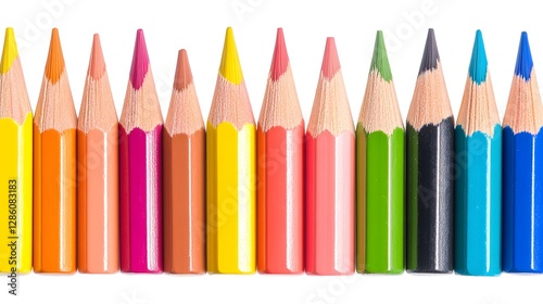 © ABC IMAGE, Fototapeta premium A set of colorful pencils, clean white background, transparent isolate