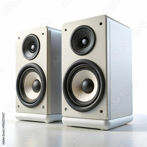 © Asif, Fototapeta premium A set of computer speakers with a minimalistic design,