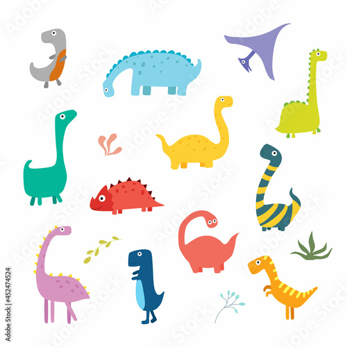 © Rata, Obraz premium A set of cute dinosaurs. Characters for children's design. Vector illustration
