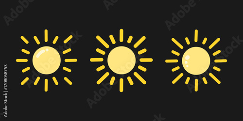 © Asyam Design, Fototapeta premium A set of cute shining sun icon symbol isolated vector illustration on black background.