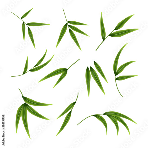 Naklejka premium A set of decorative green twigs. Bamboo twigs with leaves isolated on a white background