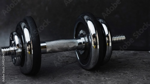 Naklejka premium A set of dumbbells for fitness and strength training. They are made of metal with a black handle and grey weight plates.