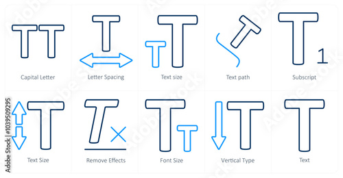 Obraz premium A set of 10 editing tools icons as capital letter, letter spacing, text size