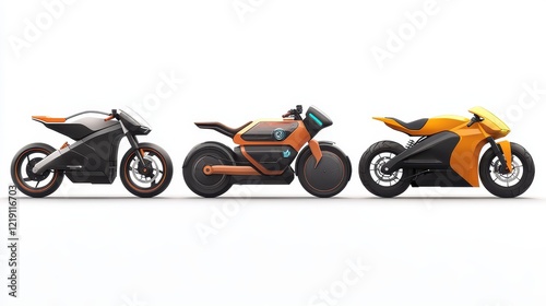 Fototapeta premium A set of electric motorbikes with sleek, futuristic designs on a white...