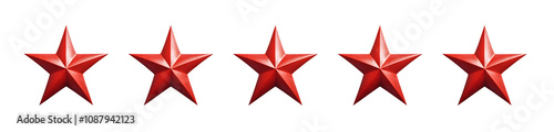 © All in Stock, Obraz premium A set of five red stars isolated on a transparent background.