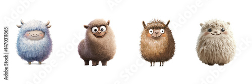 © Anik, Fototapeta premium A set of fluffy alpaca with a quirky smile and thick coat, isolated against a transparent background
