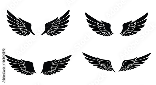 © Kuntol02, Obraz premium A set of four different black angel wing designs on white background