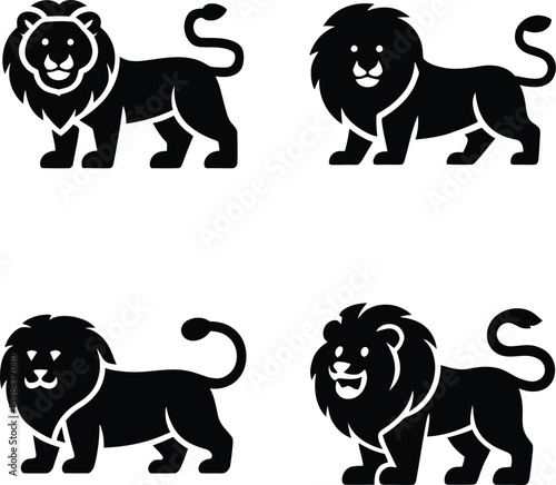 Obraz premium A set of four stylized black lion icons. Vector graphic illustrations for a logo or mascot.