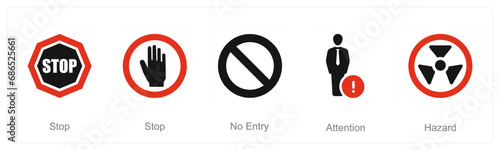 Obraz premium A set of 5 Hazard Danger icons as stop, no entry, attention