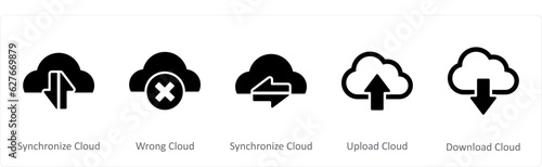 Fototapeta premium A set of 5 Internet icons as synchronize cloud, wrong cloud, upload cloud