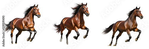 © imagify, Naklejka premium A Set of Majestically Rendered Graceful Horse in Full Gallop Across an Expansive Field with Natural Elegance Isolated on transparent Background