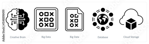 Obraz premium A set of 5 mix icons as creative brain, big data, database