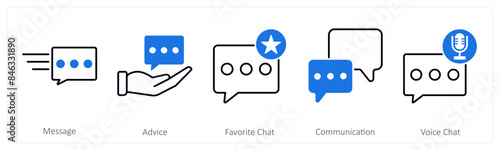 © popcornarts, Naklejka premium A set of 5 Mix icons as message, advice, favorite chat