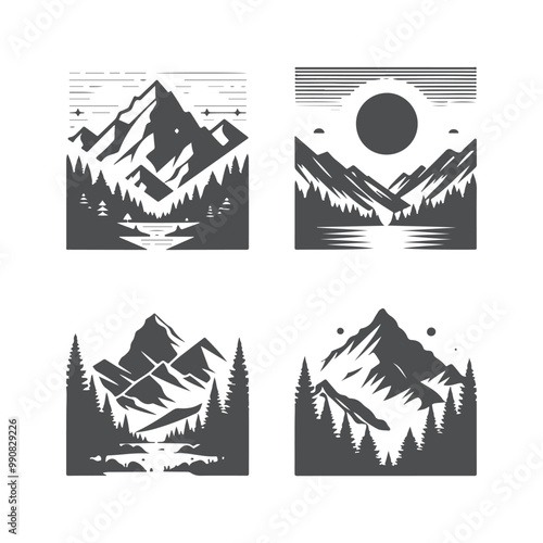© Roman, Fototapeta premium A set of mountains silhouette vector art illustration isolated on a white background