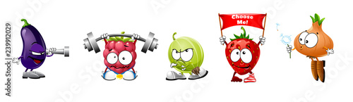 Fototapeta premium a set of multi-colored smiley vegetable icons for the web with different...