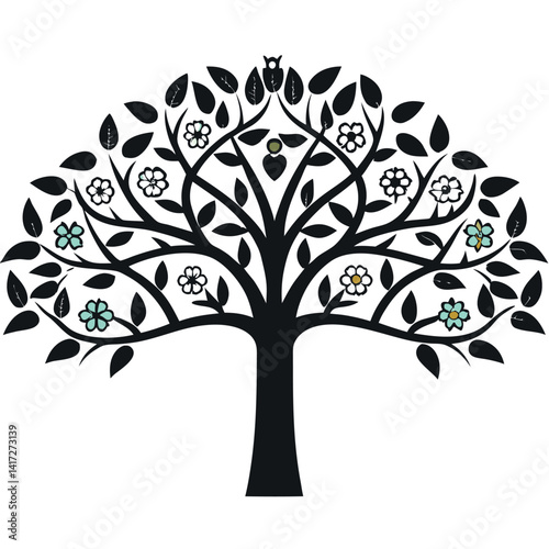 © MohammadMonirul, Fototapeta premium A set-of-nature elements blooming-tree