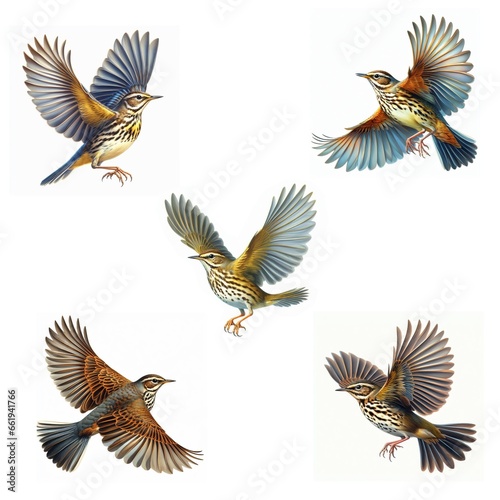 Obraz premium A set of Northern Waterthrush flying isolated on a white background