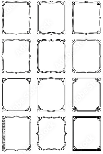 © Arif, Naklejka premium A set of ornate frames with a vintage illustration pattern and a black grunge texture border design