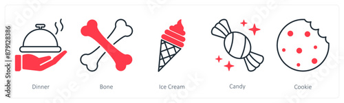 Obraz premium A set of 5 Party and Celebration icons as dinner, bone, ice cream